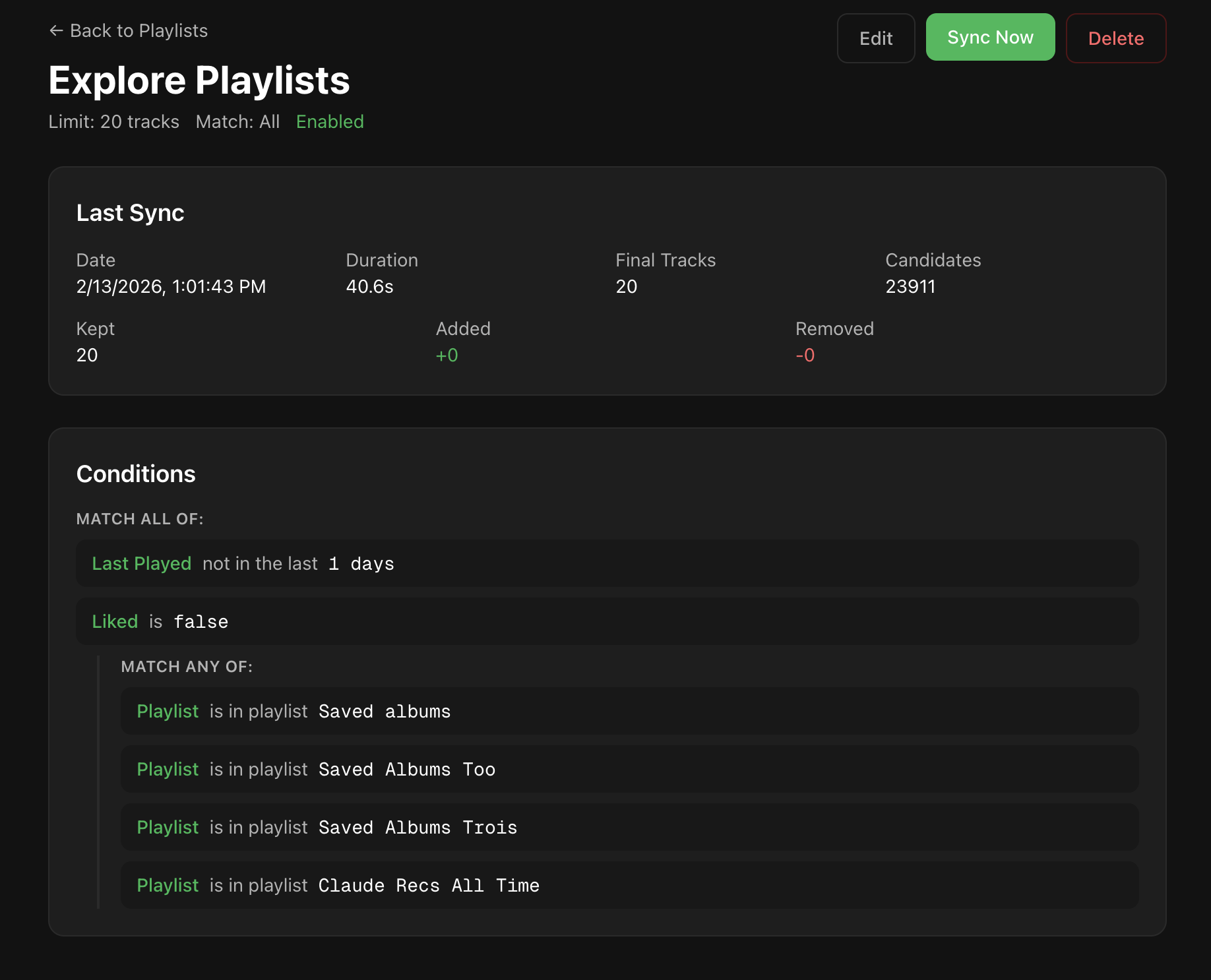 As great as Spotify has been, I have particular ways that I like to approach my music listening, and Spotify has never really delivered for me the way iTunes Smart Playlists did. I want rule-based playlists that work off of each other to get me the right balance of discovering new music, exploring my existing library, and spending time with my favorites, without ever getting burned out.